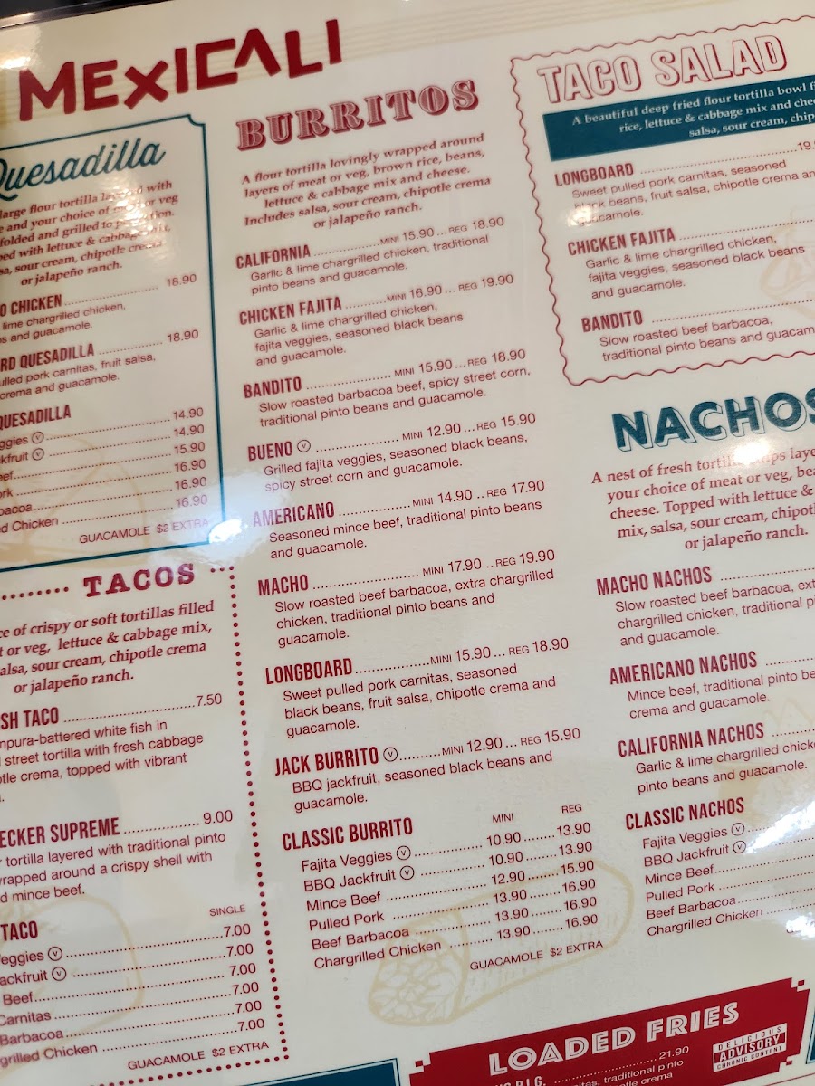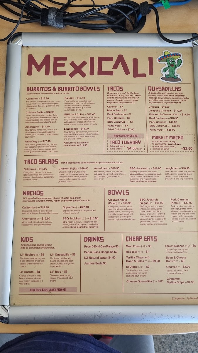 Drinks like V Energy and Pepsi complement your meal superbly. Experience friendly service in a trendy setting that reflects Napier's lively culture. Whether you're grabbing a quick bite or enjoying a meal with friends, Mexicali Fresh guarantees a memorable dining adventure.